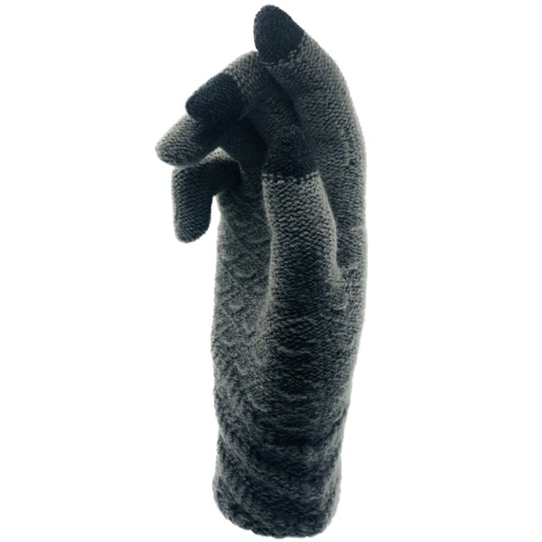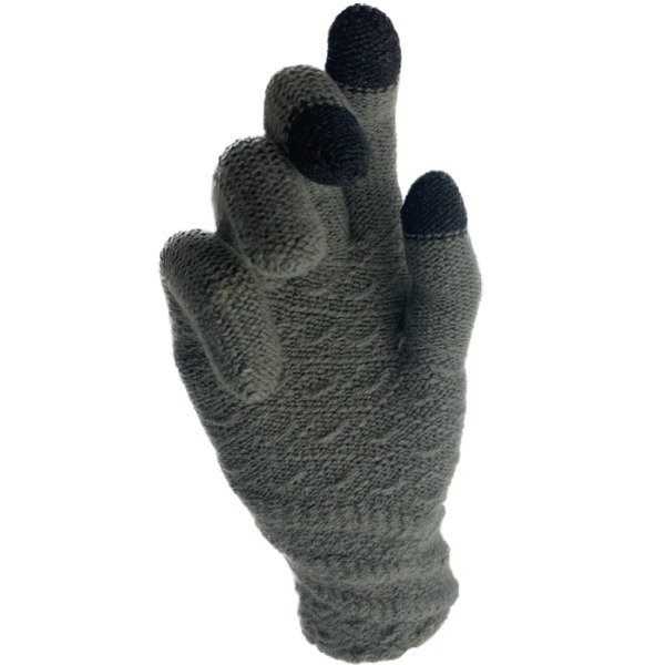 Hrubé dotykové zimné rukavice - pletený vzor, sivé