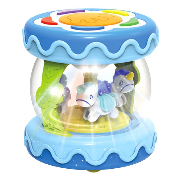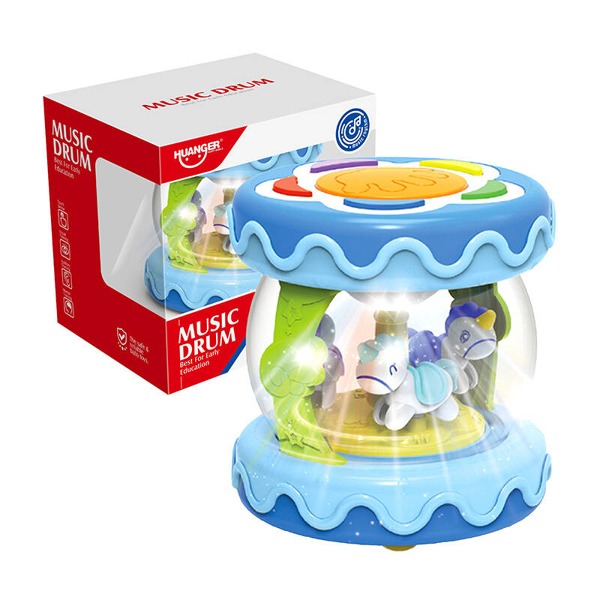 Huanger HE0701 Hudobný bubon je hračka 3 v 1, ktorá kombinuje funkcie bubna, hudobnej skrinky a projektora. Táto hračka umožňuje dieťaťu užívať si rôzne aktivity, ktoré rozvíjajú zmysly a podporujú učenie. Ako bubon podnecuje dieťa k rytmickej hre, čím rozvíja motorické zručnosti a koordináciu. V režime hudobnej skrinky rotujúce koníky a melódie vytvárajú relaxačnú atmosféru, ktorá je ideálna na zaspávanie. Ako projektor bubon premení nočnú oblohu na krásnu svetelnú šou, ktorá napodobňuje hviezdy a vytvára upokojujúcu náladu. Hračka je navyše vybavená piatimi zvukovými tlačidlami, ktoré ponúkajú rôzne funkcie vrátane bubnovania, úderných melódií, zvukov zvierat, ovládania hlasitosti a zábavných melódií a rýmovačiek.
