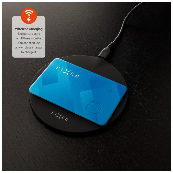 Inteligentná sledovacia karta FIXED Tag Card s podporou funkcie Find My, bezdrôtové nabíjanie, modrá