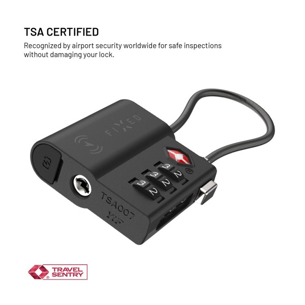 Inteligentný sledovací zámok FIXED Tag Lock s podporou Find My a TSA, čierny