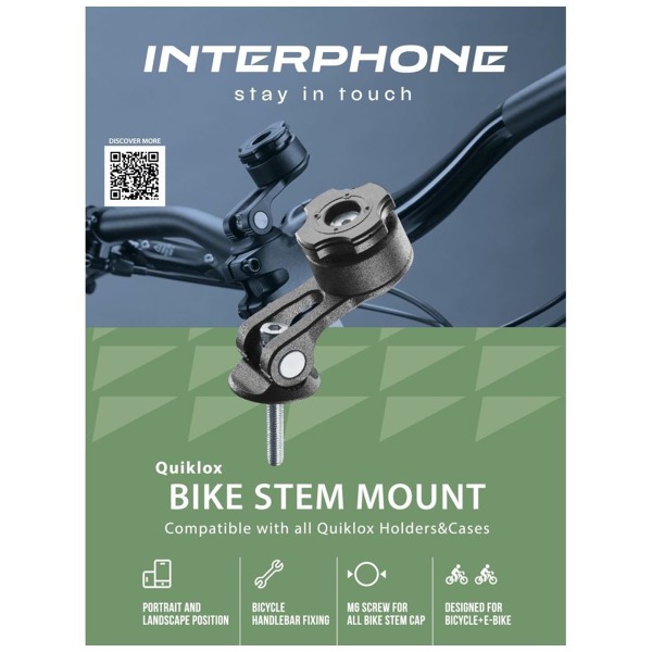 Univerzálny držiak Interphone Quiklox na krk riadidiel bicykla je kompatibilný so všetkými držiakmi telefónov Quiklox. Orientujte svoj telefón na šírku alebo na výšku. Určené pre bicykle a elektrobicykle. Systém proti uvoľneniu, ktorý zabraňuje náhodnému odpojeniu.