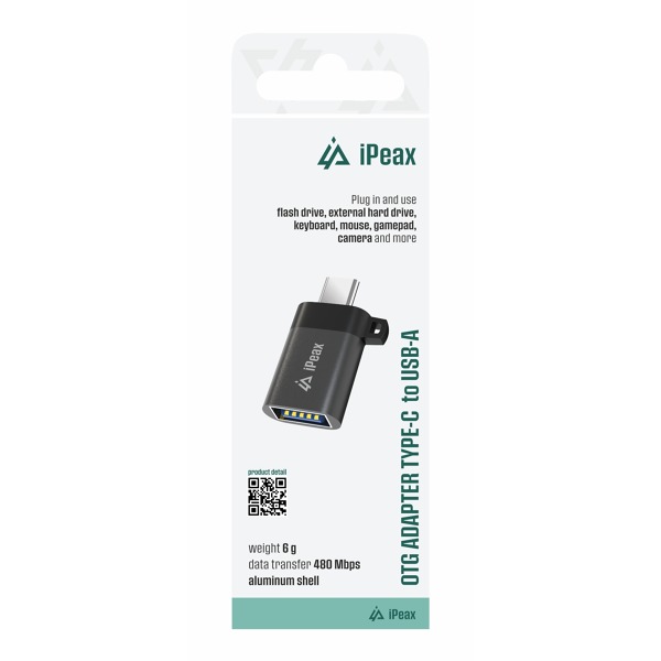 Adaptér iPEAX s konektormi USB-C (samec) a USB-A (samica) umožňuje jednoduché pripojenie flash diskov, klávesníc, myší alebo iných zariadení USB k moderným telefónom, notebookom, tabletom alebo powerbankám s portami USB-C. Vďaka podpore rozhrania USB 2.0 zvláda rýchly prenos dát rýchlosťou až 480 Mb/s.