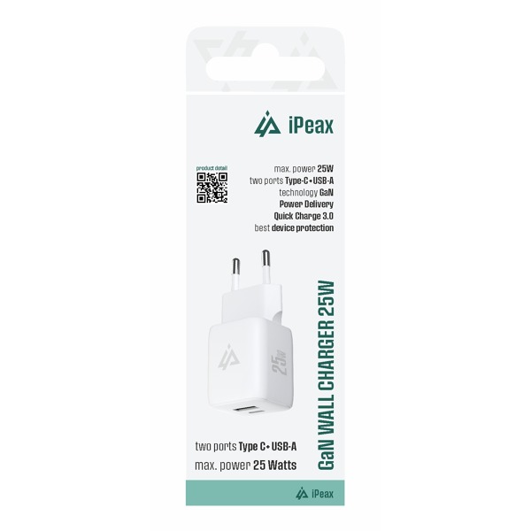 iPEAX GaN WIRED CHARGER 25W (USB-C + USB-A) WHITE