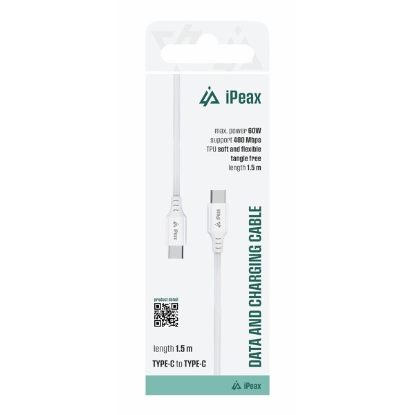 iPEAX TPU KÁBEL USB-C / USB-C 1,5M, USB 2.0 BIELY