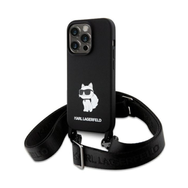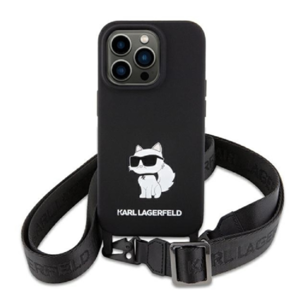 Karl Lagerfeld Apple iPhone 15 Pro Max Hardcase Crossbody Silicone Choupette Black
