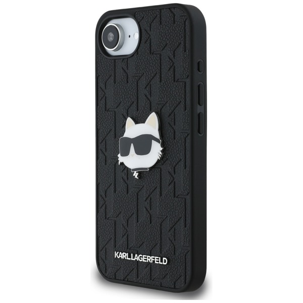 Krytoland pouzdra a kryty na mobil > Kryty a puzdrá na mobilné telefóny > iPhone > iPhone 17e > Kryty > Karl Lagerfeld - Pevné kožené puzdro Monogram (KLHCPSE4PGKLCHPK) - iPhone 17e - Monogram Choupette Head Pin
