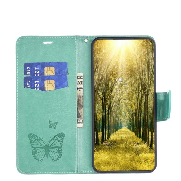 Krytoland pouzdra a kryty na mobil > Kryty a puzdrá na mobilné telefóny > Motorola > Séria Motorola Moto G > Motorola Moto G23 > Flipové / Knižkové puzdrá > Knižkový obal na mobil Motorola Moto G23 - Butterflies, zelený