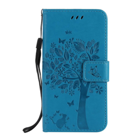 Krytoland pouzdra a kryty na mobil > Kryty a puzdrá na mobilné telefóny > Vivo > Vivo Y21s > Flipové / Knižkové puzdrá > Knižkový obal na mobilný telefón Vivo Y21s - Mačka a strom, modrý
