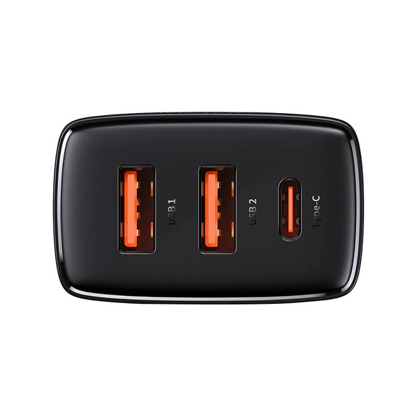 Kompaktná rýchlonabíjačka Baseus, 2xUSB, USB-C, PD, 3A, 30W (čierna)