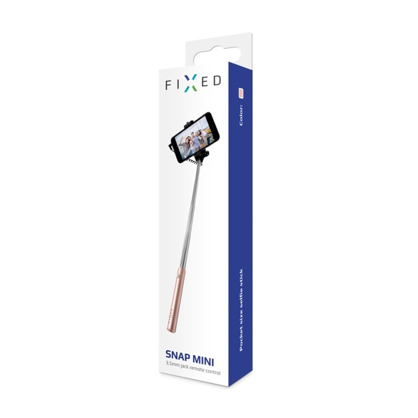 Kompaktná selfie tyč FIXED Snap Mini, spúšťanie cez 3,5 mm jack, ružovo zlatá