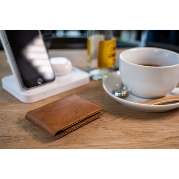 Kožená peňaženka FIXED Peňaženka z pravej hovädzej kože, hnedá