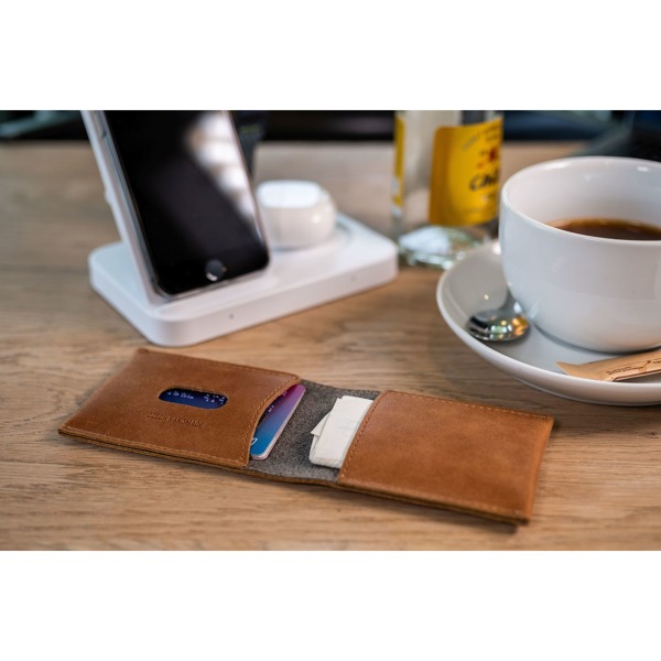Peňaženka je vyrobená z pravej hovädzej kože, ktorá pôsobí veľmi luxusne a zároveň odolne. Koža je príjemná na dotyk a jej hnedá farba je ideálne univerzálna na každodenné používanie. Okrem toho koža časom získava peknú patinu, čo jej len pridáva na charaktere. Spracovanie je veľmi precízne, švy sú pevné a rovnomerné, čo sľubuje dlhú životnosť.