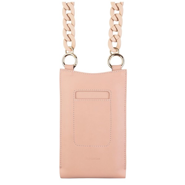 Kožená taška cez rameno s vreckom FIXED Venezia pre 7" mobilné telefóny s béžovou retiazkou, púdrovo ružová