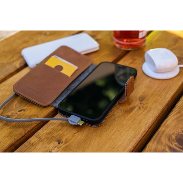 Púzdro FIXED ProFit, vyrobené z pravej hovädzej kože, je elegantným a originálnym doplnkom pre váš mobilný telefón. Chráni ho pred možným poškodením a zároveň poskytuje dostatok priestoru na vaše doklady, kreditnú kartu a niekoľko bankoviek. Puzdro ProFit je starostlivo navrhnuté tak, aby presne pasovalo na model telefónu, vnútorná silikónová vanička dokonale kopíruje tvar zariadenia a ponecháva voľný prístup ku všetkým ovládacím tlačidlám, konektorom a fotoaparátu na zadnej strane. Predná výklopná časť bezpečne chráni displej a je zaistená zatváraním na magnet. Po otvorení puzdra nájdete na vnútornej strane dve vrecká na kreditné karty a väčšie vrecko na bankovky.