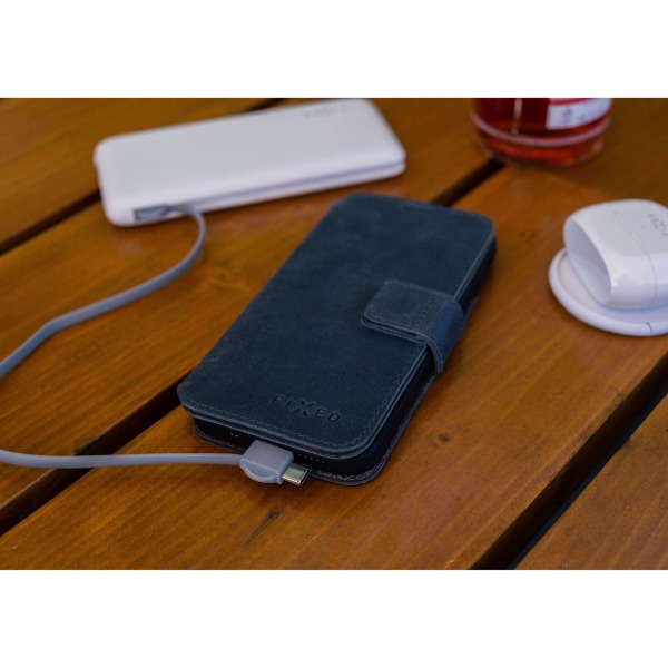 Púzdro FIXED ProFit, vyrobené z pravej hovädzej kože, je elegantným a originálnym doplnkom pre váš mobilný telefón. Chráni ho pred možným poškodením a zároveň poskytuje dostatok priestoru pre vaše doklady, kreditnú kartu a niekoľko bankoviek. Puzdro ProFit je starostlivo navrhnuté tak, aby presne pasovalo na model telefónu, vnútorná silikónová vanička dokonale kopíruje tvar zariadenia a ponecháva voľný prístup ku všetkým ovládacím tlačidlám, konektorom a fotoaparátu na zadnej strane. Predná výklopná časť bezpečne chráni displej a je zaistená zatváraním na magnet. Po otvorení puzdra nájdete na vnútornej strane dve vrecká na kreditné karty a väčšie vrecko na bankovky.