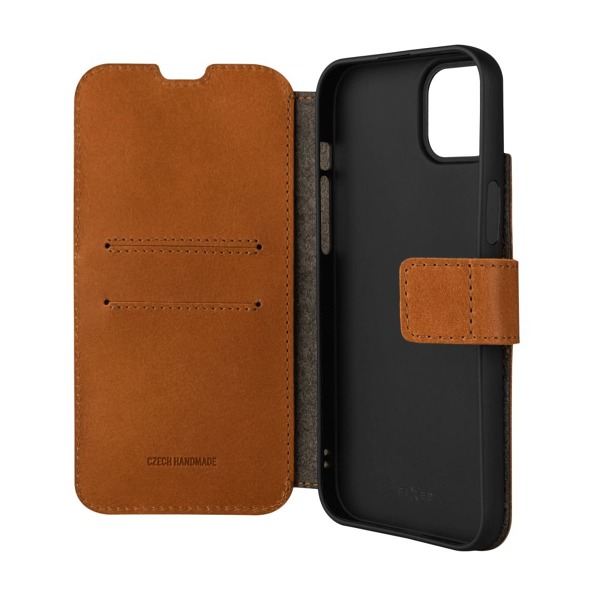 Kožené puzdro typu kniha FIXED ProFit pre Apple iPhone 15 Plus, hnedé