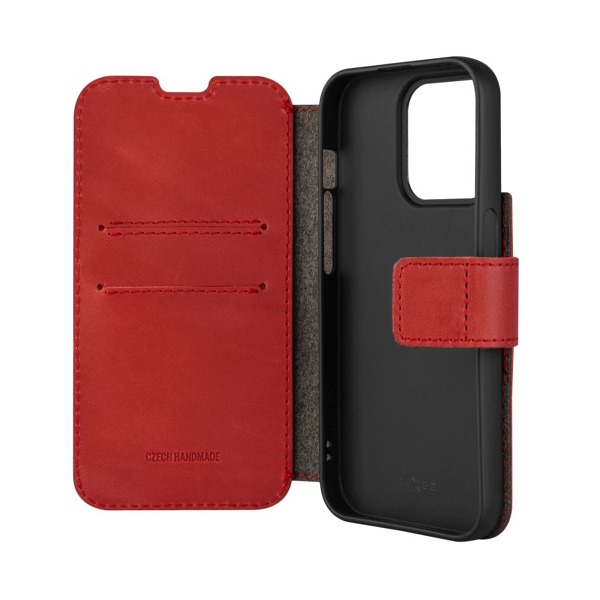 Kožené puzdro typu kniha FIXED ProFit pre Apple iPhone 15 Pro, červené