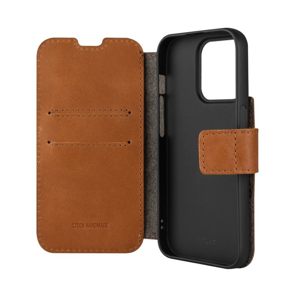 Kožené puzdro typu kniha FIXED ProFit pre Apple iPhone 15 Pro Max, hnedé