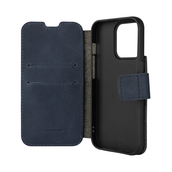 Kožené puzdro typu kniha FIXED ProFit pre Apple iPhone 15 Pro, modré