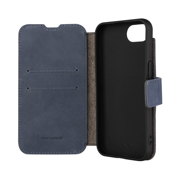 Kožené puzdro typu kniha FIXED ProFit pre Apple iPhone 16e, modré