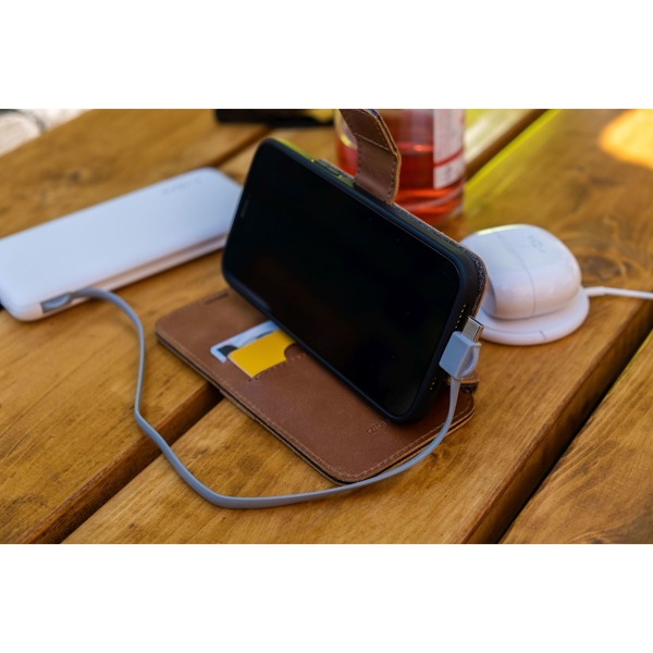 Púzdro FIXED ProFit, vyrobené z pravej hovädzej kože, je elegantným a originálnym doplnkom pre váš mobilný telefón. Chráni ho pred možným poškodením a zároveň poskytuje dostatok priestoru pre vaše doklady, kreditnú kartu a niekoľko bankoviek. Puzdro ProFit je starostlivo navrhnuté tak, aby presne pasovalo na daný model telefónu, vnútorná silikónová vanička dokonale kopíruje tvar zariadenia a ponecháva voľný prístup ku všetkým ovládacím tlačidlám, konektorom a fotoaparátu na zadnej strane. Predná výklopná časť bezpečne chráni displej a je zabezpečená zatváraním na magnet. Po otvorení puzdra nájdete na vnútornej strane dve vrecká na kreditné karty a väčšie vrecko na bankovky.