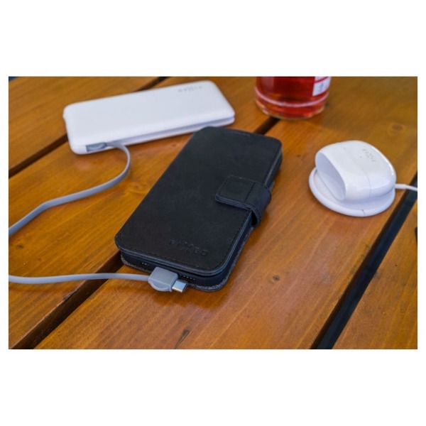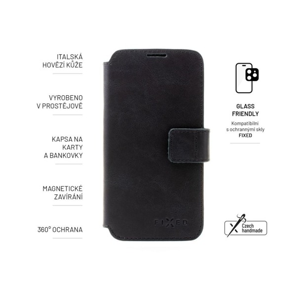 Púzdro FIXED ProFit, vyrobené z pravej hovädzej kože, je elegantným a originálnym doplnkom pre váš mobilný telefón. Chráni ho pred možným poškodením a zároveň poskytuje dostatok priestoru pre vaše doklady, kreditnú kartu a niekoľko bankoviek. Puzdro ProFit je starostlivo navrhnuté tak, aby presne pasovalo na model telefónu, vnútorná silikónová vanička dokonale kopíruje tvar zariadenia a ponecháva voľný prístup ku všetkým ovládacím tlačidlám, konektorom a fotoaparátu na zadnej strane. Odklápacia predná časť chráni displej a je zabezpečená zatváraním na magnet. Po otvorení puzdra nájdete na vnútornej strane dve vrecká na kreditné karty a väčšie vrecko na bankovky.