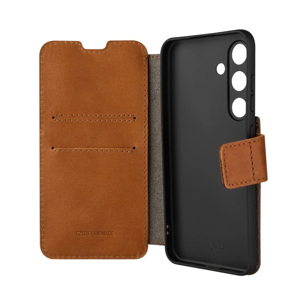 Kožené puzdro typu kniha FIXED ProFit pre Samsung Galaxy S24, hnedé