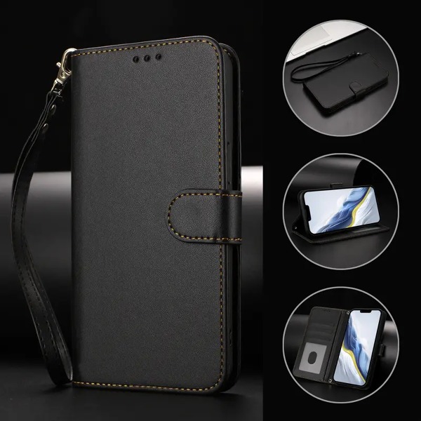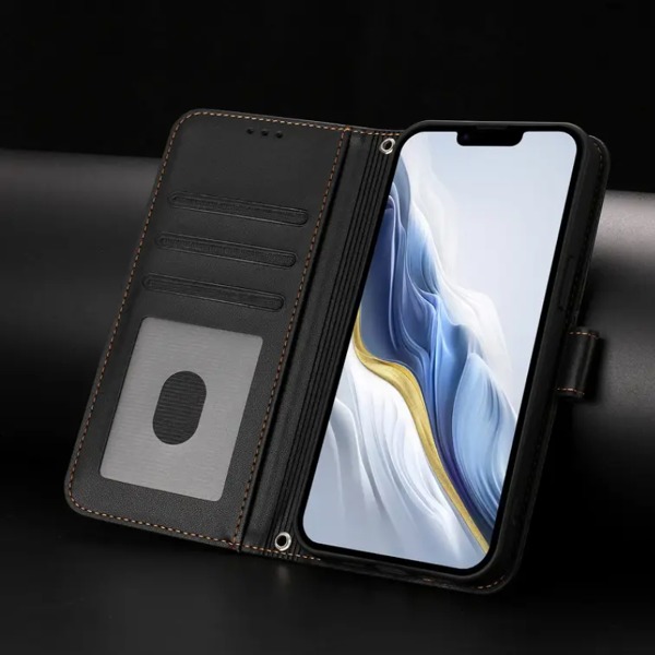 Minimalistický vzhľad v čiernej farbe poskytuje profesionálny dojem, zatiaľ čo mäkká textúra koženky je príjemná na dotyk a zvyšuje komfort držania. Flipové otváranie knihy chráni nielen zadnú stranu telefónu, ale aj jeho displej pred poškriabaním, nečistotami a drobnými nárazmi.