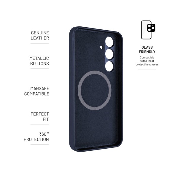 Kožený zadný kryt FIXED MagLeather s podporou MagSafe pre Samsung Galaxy S24+, modrý