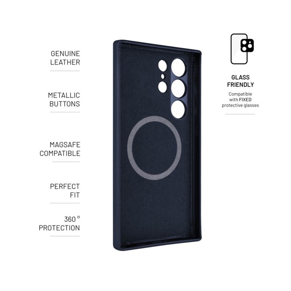 Kožený zadný kryt FIXED MagLeather s podporou MagSafe pre Samsung Galaxy S24 Ultra, modrý