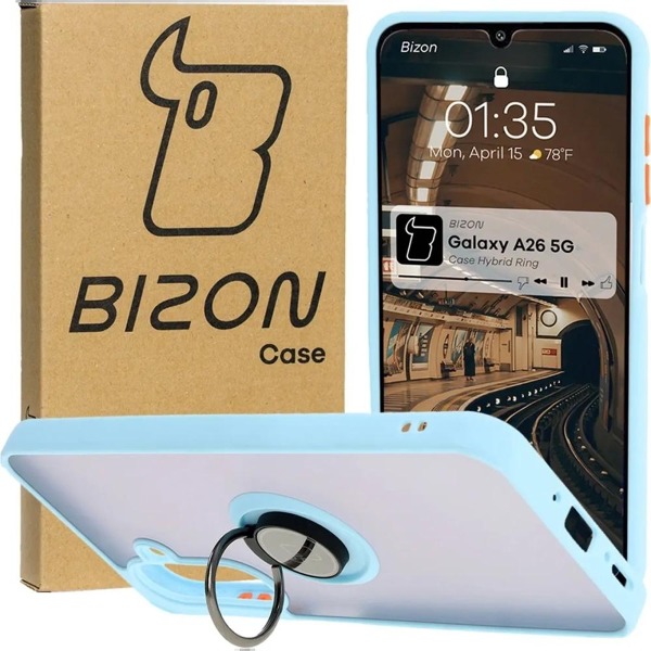 Krytoland pouzdra a kryty na mobil > Kryty a puzdrá na mobilné telefóny > Samsung > Samsung Galaxy série A > Samsung Galaxy A26 > Kryty > Kryt Bizon Hybrid Ring pre Samsung Galaxy A26 5G - Dymový so svetlomodrým rámom