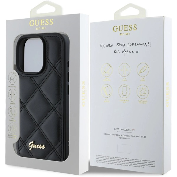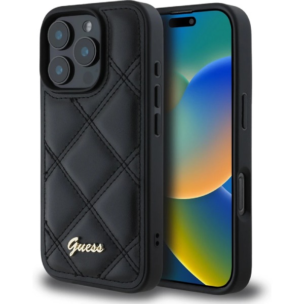 Kryt Guess Apple iPhone 16 Pro hardcase Quilted Metal Logo - Čierny