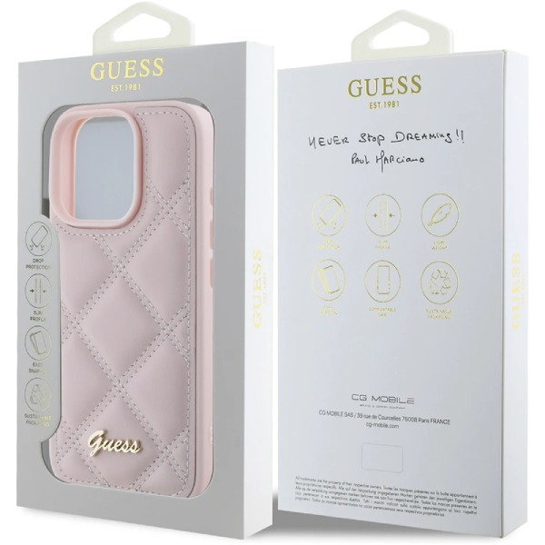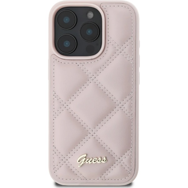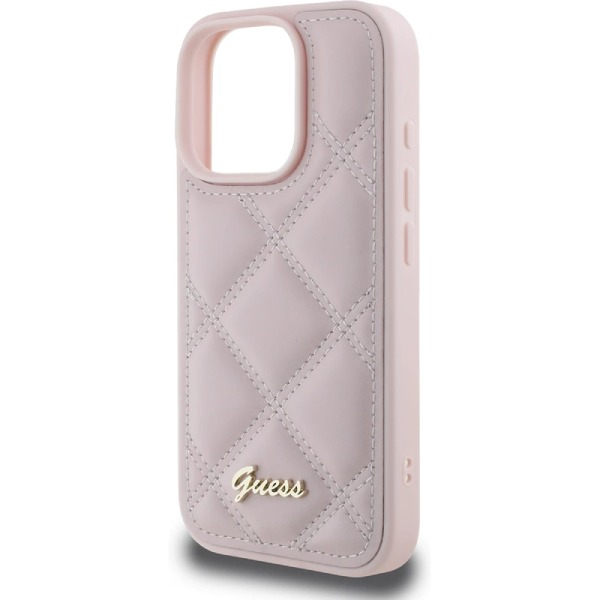 Kryt Guess Apple iPhone 16 Pro hardcase Quilted Metal Logo - Ružový
