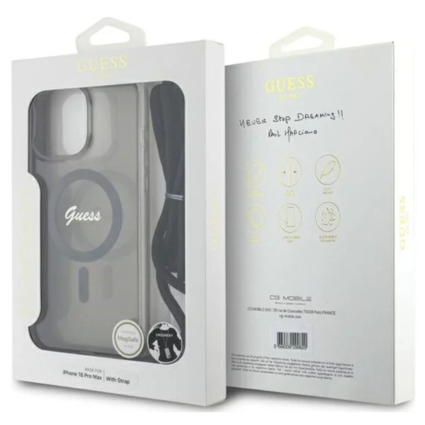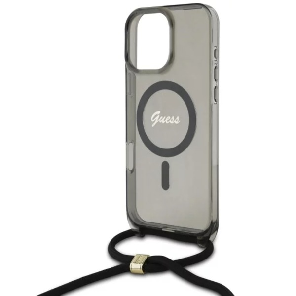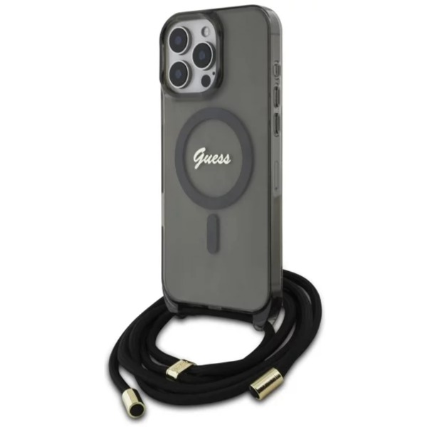 Krytoland pouzdra a kryty na mobil > Kryty a puzdrá na mobilné telefóny > iPhone > iPhone 16 Pro Max > Kryty > Kryt Guess Apple iPhone 16 Pro Max hardcase Crossbody Cord Script MagSafe - čierny