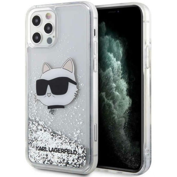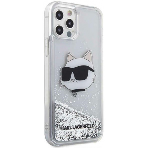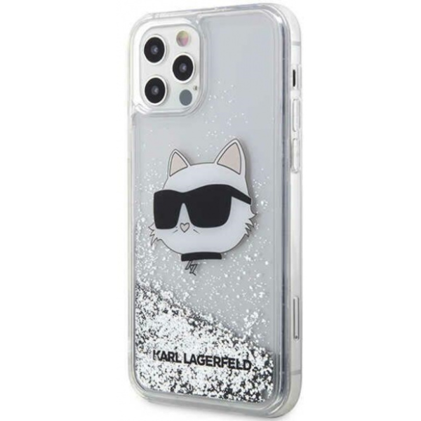 Kryt Karl Lagerfeld Apple iPhone 12 Pro Silver Hardcase Glitter Choupette Head