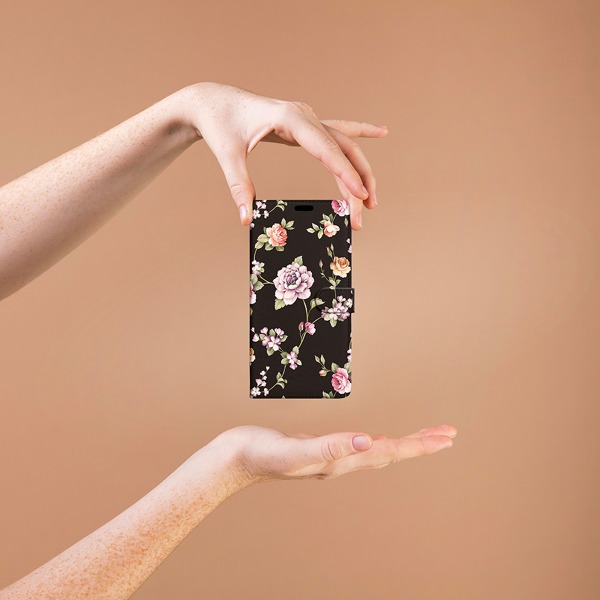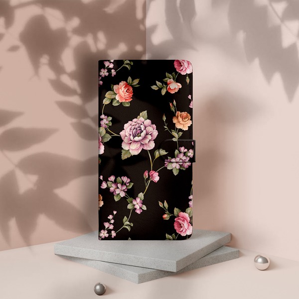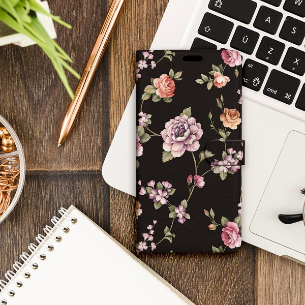 Krytoland pouzdra a kryty na mobil > Kryty a puzdrá na mobilné telefóny > iPhone > iPhone 12 Pro > Flipové / Knižkové puzdrá > Flipy dizajn > Biela > Kryt na knihu pre iPhone 12 Pro - Kvety na čiernom pozadí