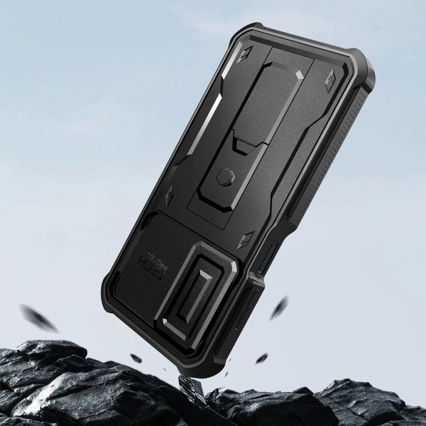 Dvojdielne puzdro kombinuje tvrdý pancier, ktorý sa nosí na zadnej strane a je vyrobený z povrchovej úpravy PC a nárazuvzdorného TPU. Dodatočné vystuženie v rohoch - ochranné airbagy - účinne tlmia akýkoľvek pád. Prednú časť zariadenia obopína rám s integrovaným polykarbonátovým krytom. Toto riešenie dokonale oddeľuje displej a chráni ho pred poškriabaním.