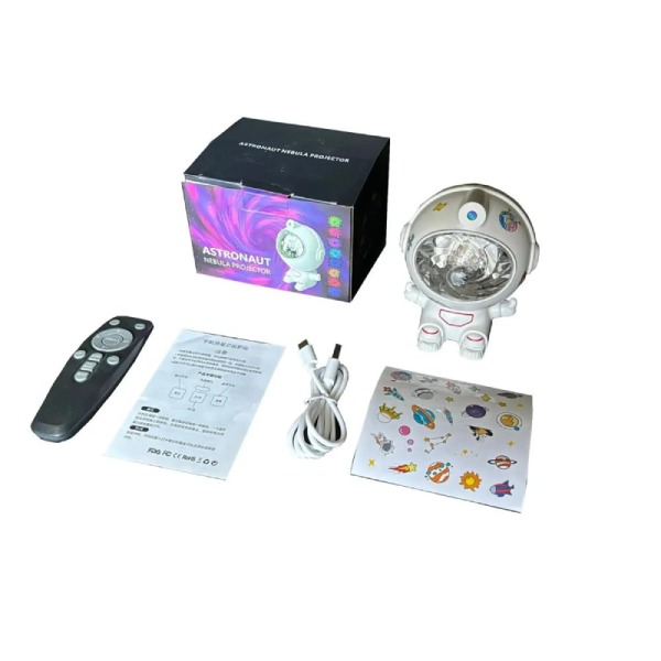 LED projektor hmlovina nočná obloha, polárna žiara a hviezdy, astronaut - biely