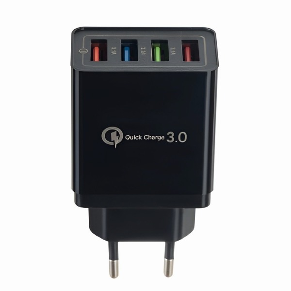 Luxusný nabíjací adaptér 3.0 - čierny, štyri nabíjacie porty