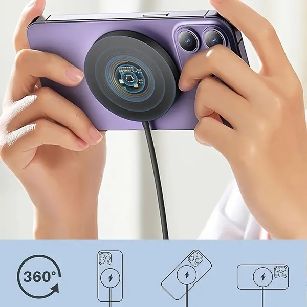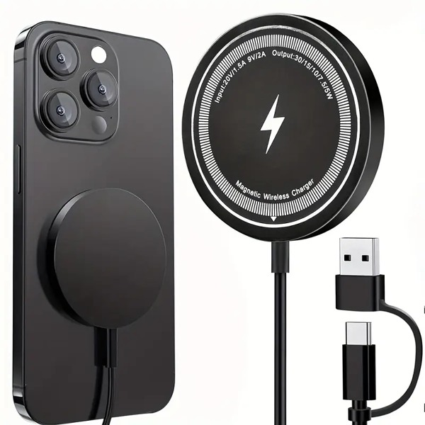 Magnetická bezdrôtová nabíjačka s funkciou MagSafe a káblom 2v1 USB A/USB C - rýchle a pohodlné nabíjanie