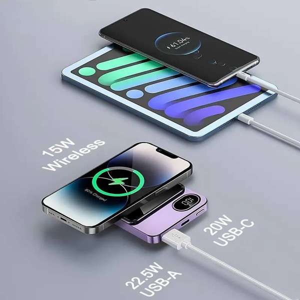 Stylový magnetický powerbank s kapacitou 10 000 mAh ponúka výkonné 22,5W USB a 20W USB-C PD rýchle nabíjanie. Bezdrôtové magnetické nabíjanie s výkonom až 15W je ideálne pre 12-15 série iPhonov. Kompaktné telo, integrovaný LED displej a technológia MagSafe z neho robia ideálneho spoločníka na cesty, výlety a každodenné používanie. Kompatibilný so systémami Android aj iOS.