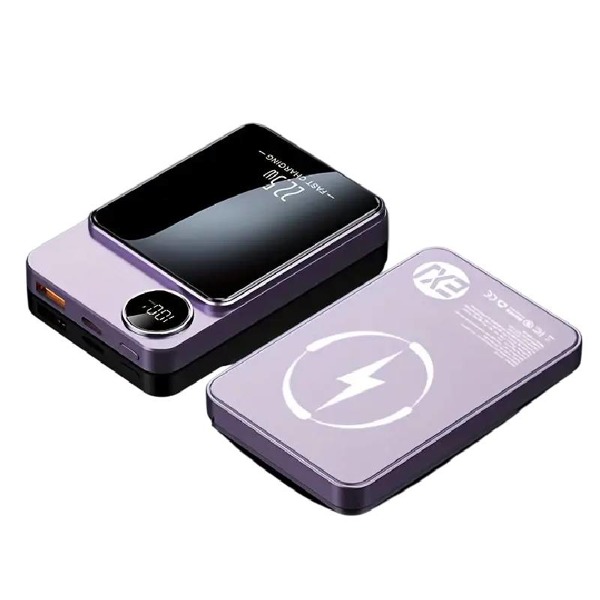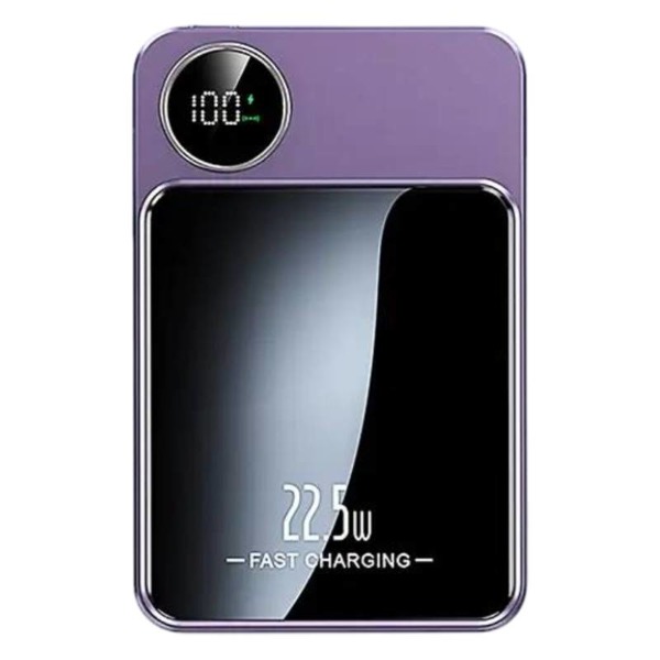 Magnetická tenká powerbanka 10000 mAh, 22,5 W PD20W s displejom - fialová