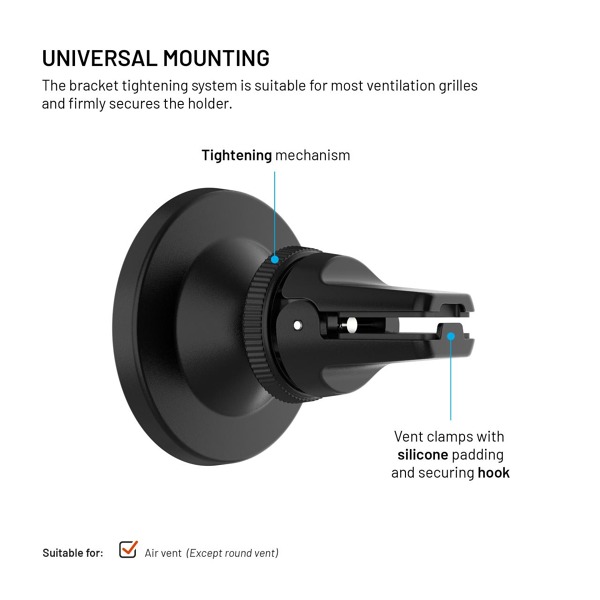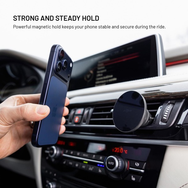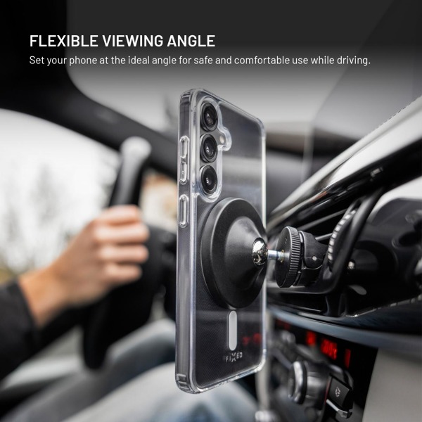 Magnetický držiak do ventilácie FIXED MagCircle je elegantné a praktické riešenie na bezpečné upevnenie telefónu v aute s podporou MagSafe. Vďaka silným neodymovým magnetom drží telefón pevne na mieste aj pri prejazde nerovnosťami a jeho upevnenie je otázkou okamihu - stačí ho zacvaknúť a vyraziť. Ovládanie jednou rukou zaručuje maximálny komfort pri jazde. Držiak je navrhnutý tak, aby sa dal do ventilácie pripevniť pomocou klieští s reverzným háčikom, čo zaručuje stabilitu vo väčšine typov ventilácií. Otočný kĺb umožňuje nastaviť ideálny uhol pohľadu podľa potreby. Predný povrch z tvrdeného skla dodáva držiaku prémiový vzhľad a zároveň zabezpečuje hladký kontakt s telefónom. Minimalistický dizajn vyvinutý v Českej republike dokonale zapadne do interiéru každého vozidla.