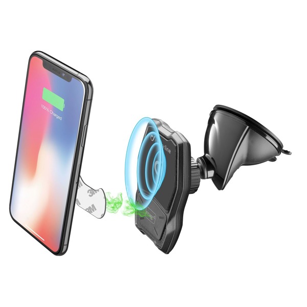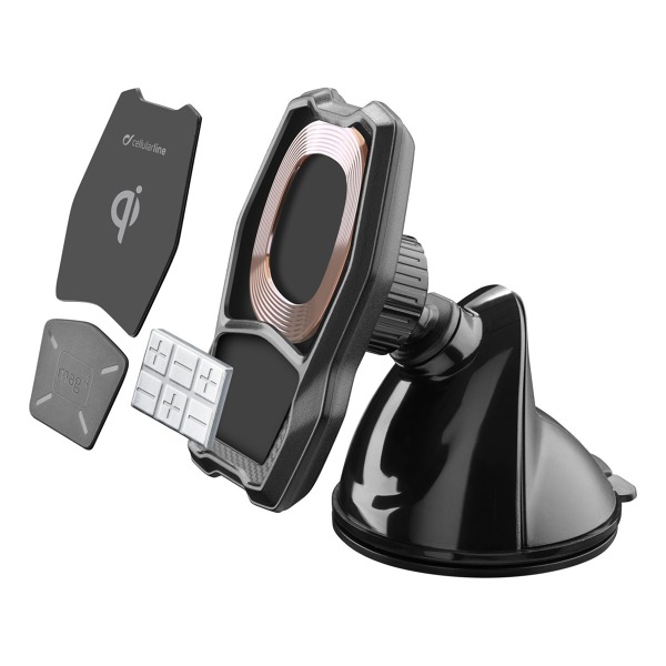 Magnetický držiak s prísavkou a bezdrôtovým nabíjaním Cellularline MAG4 Pilot Force Wireless, čierny