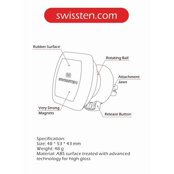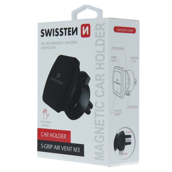 Krytoland pouzdra a kryty na mobil > Príslušenstvo pre automobily > Držiaky do auta > Držiaky do mriežky ventilácie > MAGNETICKÝ DRŽIAK VENTILÁCIE DO AUTA SWISSTEN S-GRIP AV-M3