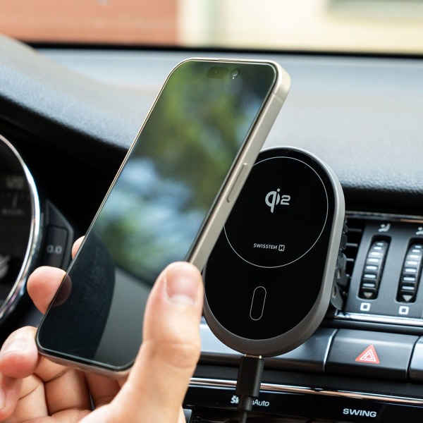 Krytoland pouzdra a kryty na mobil > Príslušenstvo pre automobily > Držiaky do auta > Držiaky do mriežky ventilácie > MAGNETICKÝ DRŽIAK DO AUTA SWISSTEN MagRide S BEZDRÔTOVÝM NABÍJANÍM Qi2 15W (kompatibilný s MagSafe)