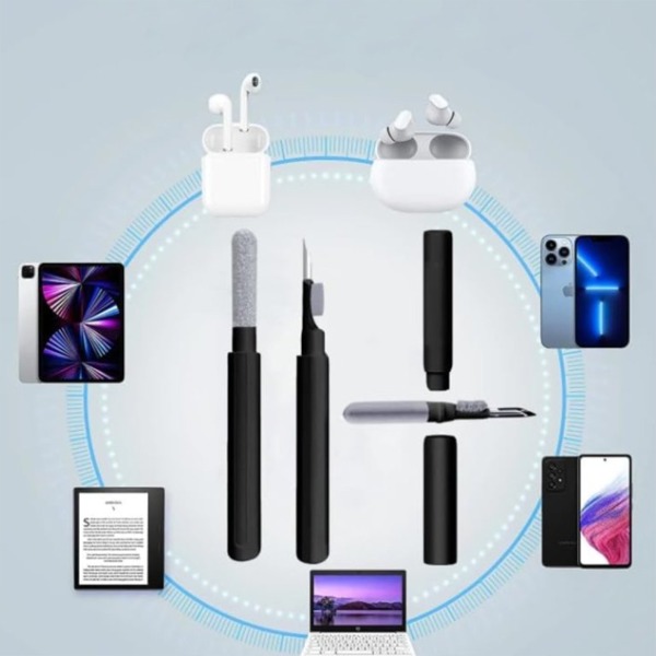 Objavte dokonalý nástroj na starostlivosť o vaše slúchadlá, mobilný telefón a ďalšie zariadenia - kompaktné čistiace pero 3 v 1, ktoré v sebe spája presnosť, jednoduchosť a účinnosť. Vďaka praktickému trojkombinácii získate prístup k jemnej kefke na odstraňovanie prachu z reproduktorov a portov, jemnej hubke na detailné čistenie vnútra puzdra a špicatému plastovému nástroju na odstraňovanie nečistôt z ťažko prístupných miest.