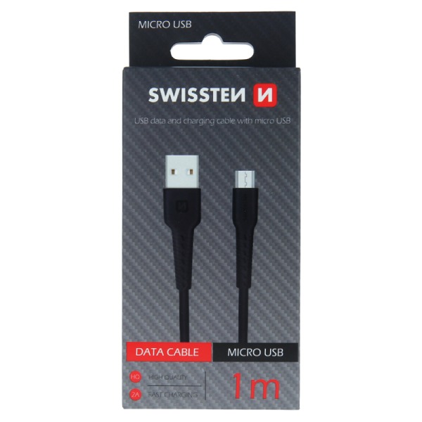 Nabíjací kábel Swissten USB Micro - 1M, čierny