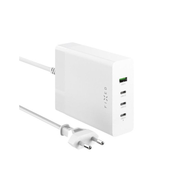 Sieťová nabíjacia stanica FIXED s technológiou GaN a vynikajúcim výkonom až 200 W je univerzálny štvorportový adaptér, ktorý združuje množstvo nabíjačiek do jednej. Nabíjačka je vybavená tromi portami USB-C, jedným portom USB-A a podporou technológie Power Delivery na rýchle nabíjanie všetkých pripojených zariadení. Tradičné kremíkové polovodiče sú nahradené modernou technológiou GaN, ktorá odoláva vyššiemu zaťaženiu, zlepšuje účinnosť nabíjania a zachováva si kompaktné rozmery v porovnaní s inými nabíjačkami rovnakého výkonu. Na nabíjanie výkonnejších zariadení je vždy k dispozícii port USB-C, ktorý ponúka výkon až 100 W, a to buď samostatne, alebo v kombinácii. Pri súčasnom zapojení viacerých portov nabíjačka sama rozdeľuje potrebný výkon medzi jednotlivé zariadenia podľa ich potrieb. Súčasťou adaptéra je odpojiteľný napájací kábel s dĺžkou 1,5 metra. Bezpečné nabíjanie zabezpečuje viacnásobná ochrana proti prepätiu, prehriatiu a skratu. Nahraďte jednotlivé nabíjačky doma alebo v kancelárii jedným sieťovým adaptérom, ktorý vám ušetrí veľa miesta a starostí.
