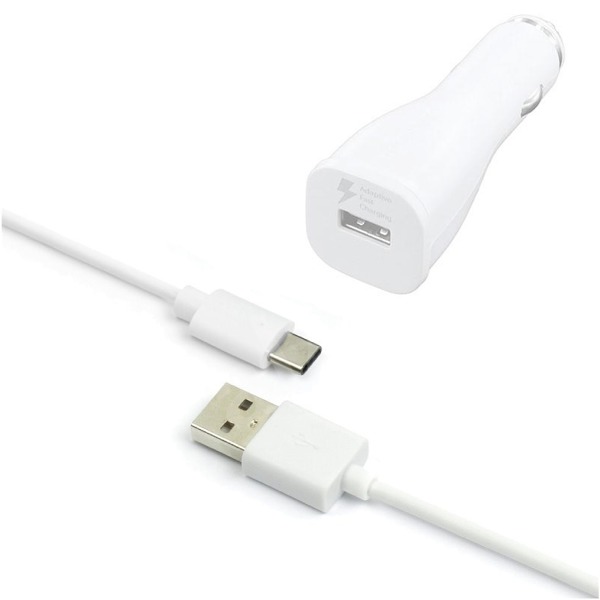 Nabíjačka do auta 2,1 A + nabíjací kábel typu C - biely
